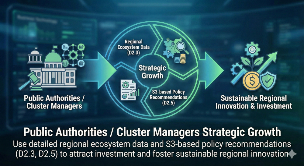 Utilise detailed regional ecosystem data and S3-based policy recommendations (D2.3, D2.5) to attract investment and foster sustainable regional innovation.